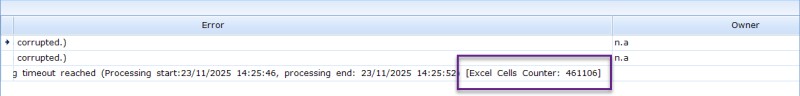 Number of processed cells is shown under "Skipped Documents" tab in Error field: